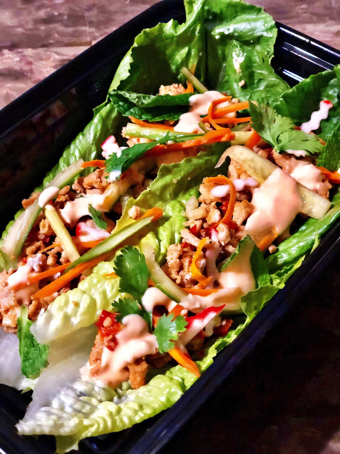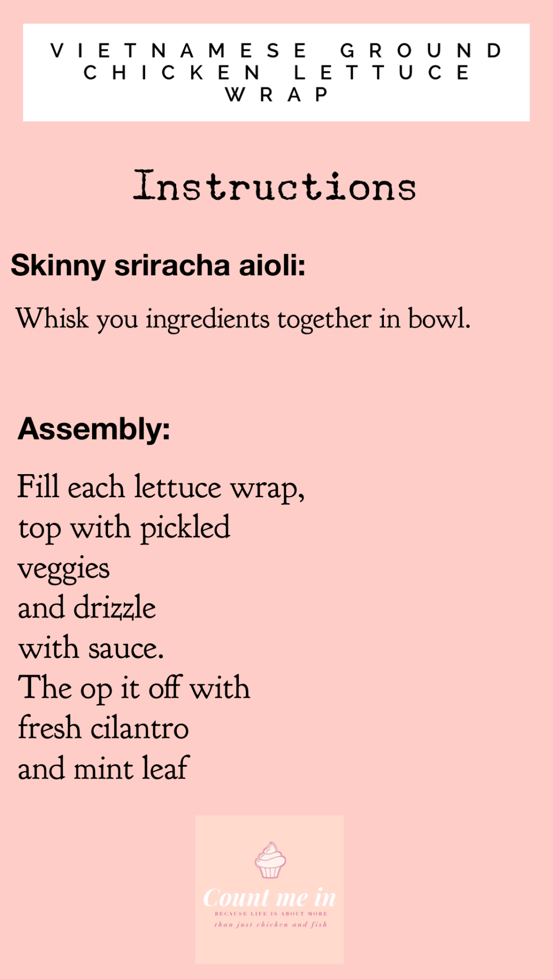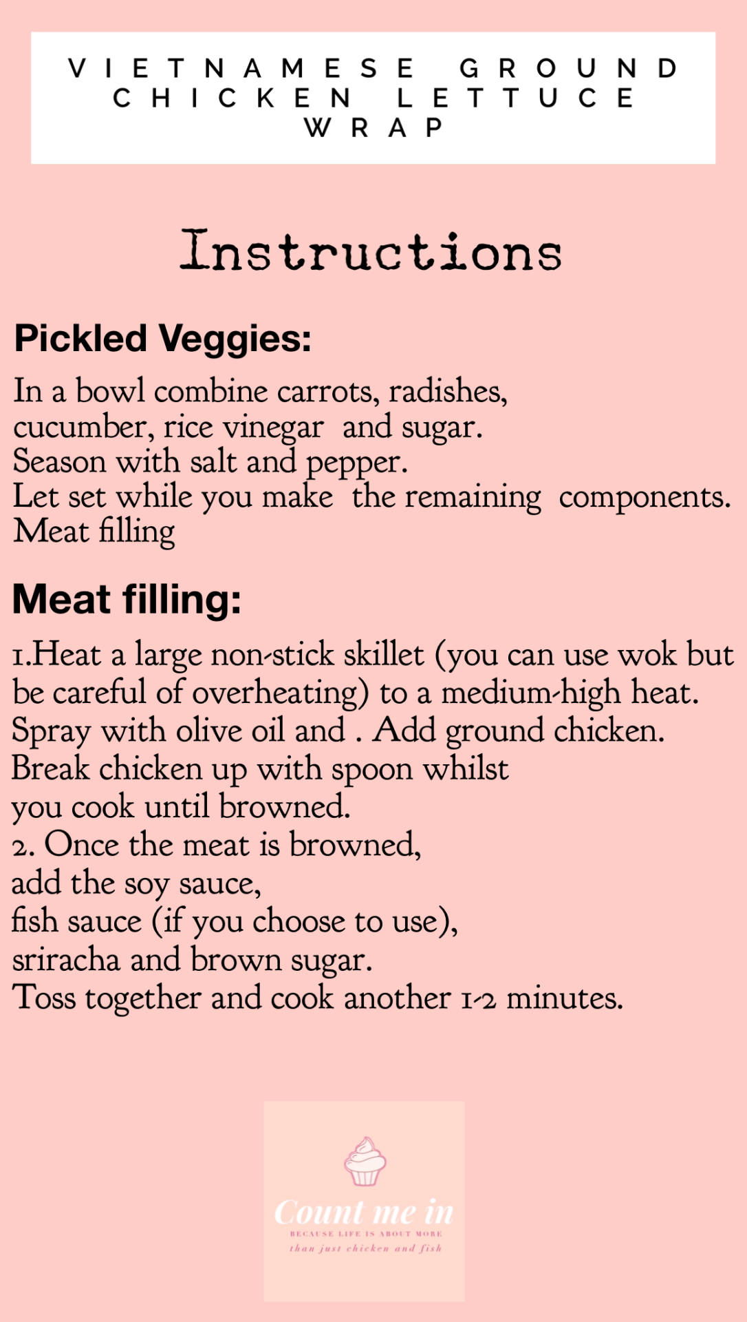 I changed the meat and some of the Ingredients a bit to fit my calorie limitations. I also completely got rid of their spicy sauce and found another one with fewer calories. I LOVED it. It was a light and refreshing lunch that I looked forward to eating. I precook a few meals and arrange them to eat through out the week. This allows me to meal prep and adjust things so I do not get tired of eating them. This recipe makes 6 wraps. I ate this ,either for lunch or dinner, 3 different days of my work week. If you love Vietnamese food then this is a MUST TRY!